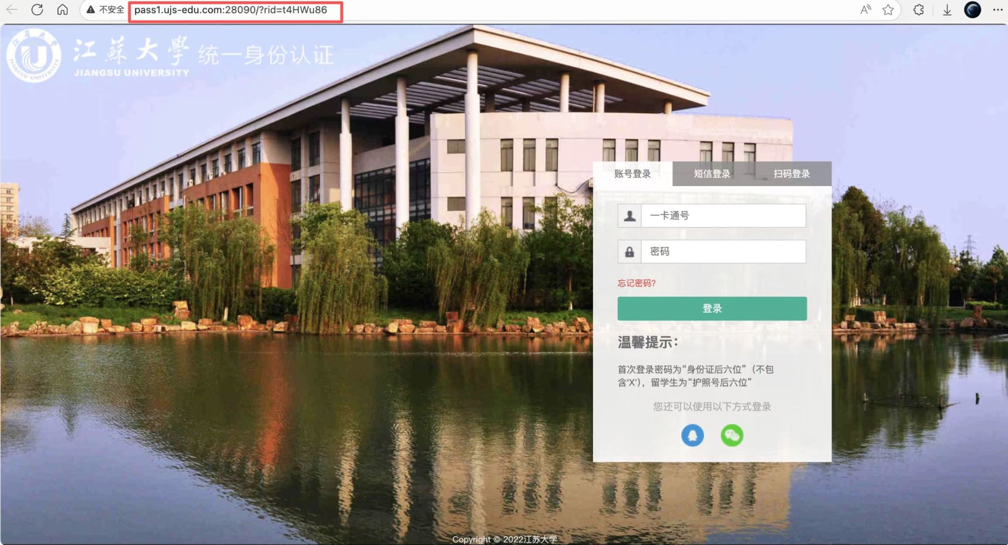 3. 钓鱼页面做的很逼真,但是仔细看一下地址栏,域名是pass1.ujs-edu.com,不是江苏大学的官方域名pass.ujs.edu.cn。可以确认这是一个钓鱼链接。